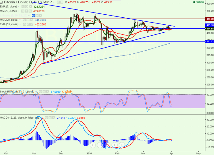 - BTC/USD major resistance is around $428 and break above targets $450/$465.The minor resistance is around $425.