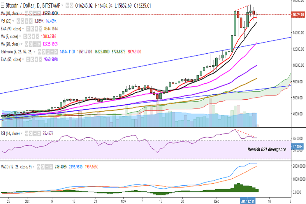 BTC/USD appears to be extending consolidation on Thursday and is currently trading around 16257 levels at the time of writing (Bitstamp).