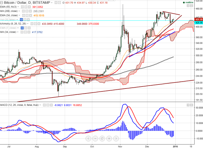 BTC/USD has jumped till $434.97 yesterday and slightly declined from that level. It is currently trading around $431.