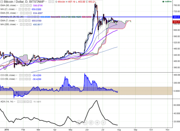 Long-term trend remains to be bullish. BTC/USD faces strong support at $645 (Jul 22nd low). So further bearishness can be seen only below that level.
