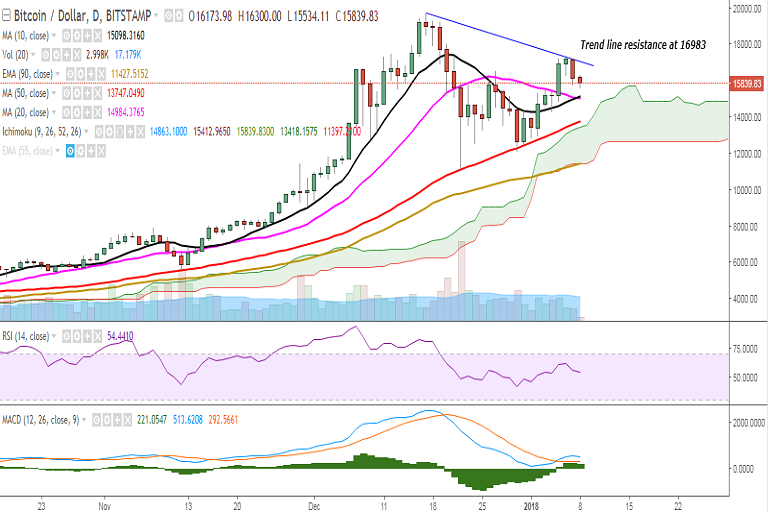BTC/USD is trading in the red after it surged to 17234 levels on January 06. It is currently trading at 15937 levels at the time of writing (Bitstamp).