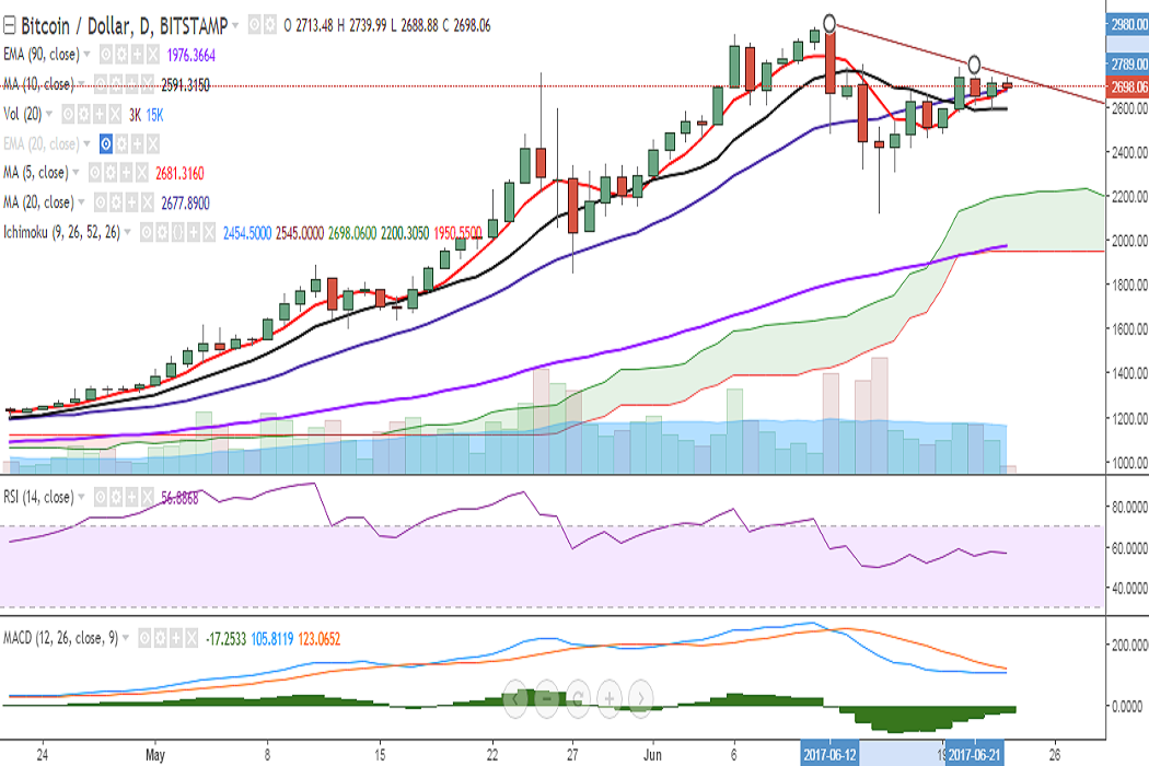 BTC/USD is extremely rangebound on Friday and hovering around 2700 levels at the time of writing (Bitstamp).