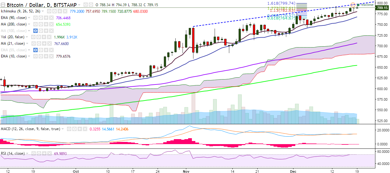BTC/USD is gradually moving north and is currently trading at 790 levels at the time of writing (Bitstamp).