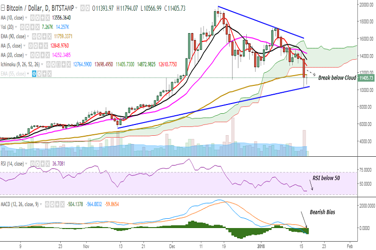 BTC/USD plunged to 10162 levels on Tuesday before closing at 11386 levels. It is currently trading at 11432 levels at the time of writing (Bitstamp).