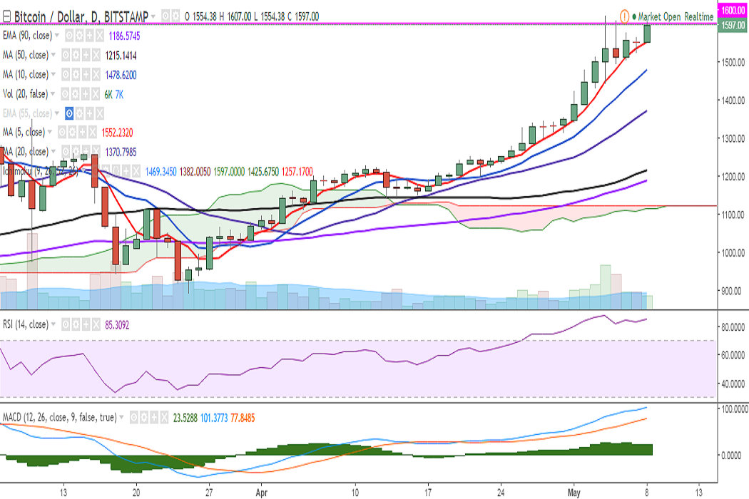 BTC/USD once again broke above the 1600 mark on Monday and is currently trading at 1605 levels at the time of writing (Bitstamp).