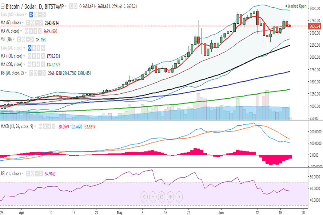 BTC/USD is trading in a very narrow range on Thursday after being rejected at 2800 levels. It is currently trading at 2650 levels at the time of writing (Bitstamp).
