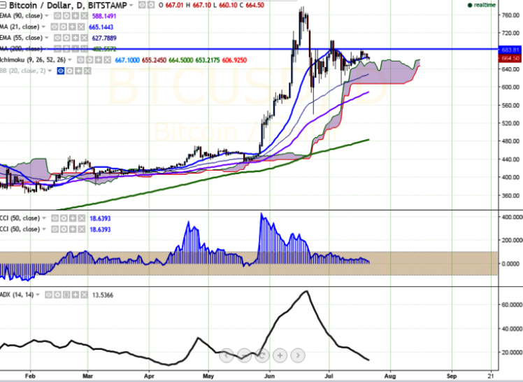 BTC/USD has retreated till $660 after making a high of $682.21 on Tuesday. It is currently trading at $664.50 (Bitstamp).