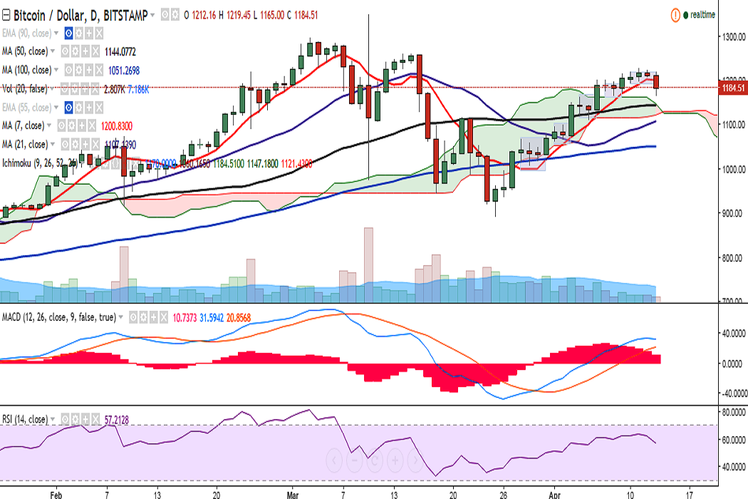 BTC/USD failed to break above the 1220 mark and dropped to 1165 levels on Thursday. It is currently trading at 1186 levels at the time of writing (Bitstamp).