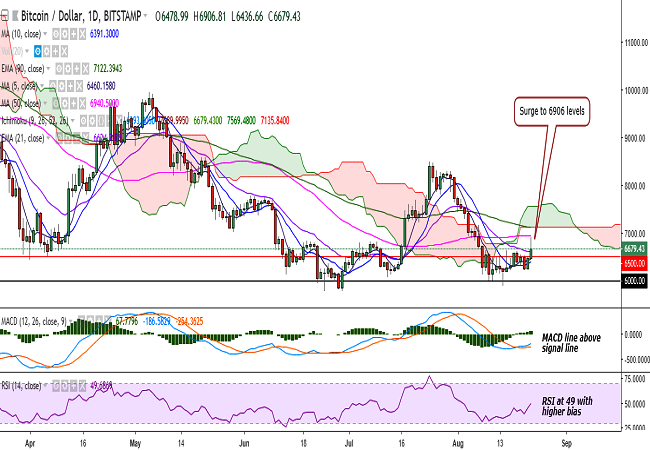BTC/USD surged to 6906 levels earlier in the day. Reports suggest that the spike coincided with BitMEX halting its services for maintenance purposes.