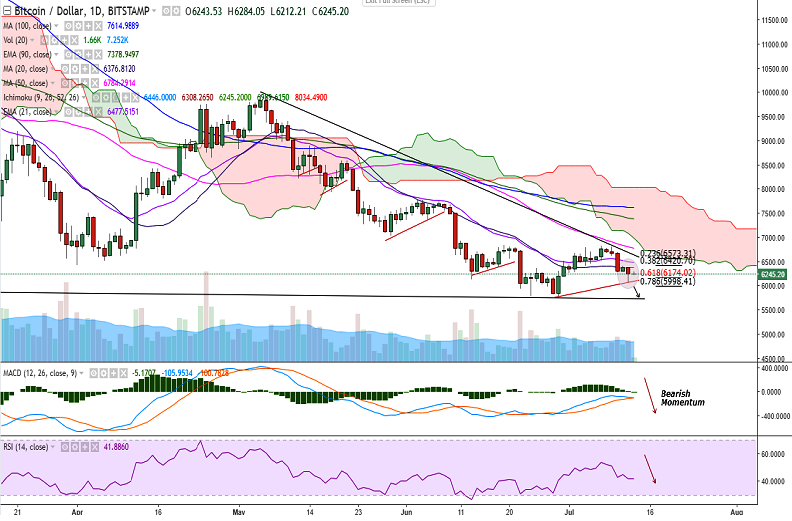 BTC/USD dropped to 6072 levels on Thursday before closing at 6243 levels. It is largely unchanged on Friday and trading at 6230 levels at the time of writing (Bitstamp).