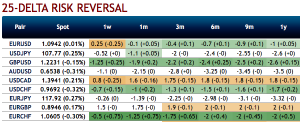 Options Strategy And Rationale: EUR risk-reversal numbers have indicated the mounting hedging sentiments for the bearish risks amid mild fresh positive bids are observed (1st chart).