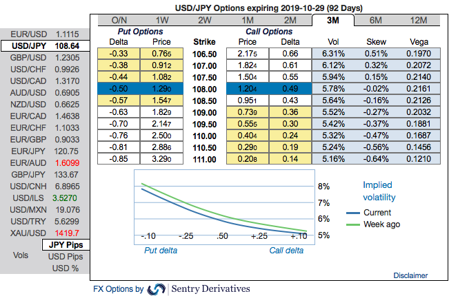Please be noted that the positively skewed IVs of 3m tenors are signifying the hedging interests for the bearish risks. We see bids for OTM strikes up to 106.50 levels. This indicates hedgers’ interests in OTM put strikes, overall, put holders are on the upper hand.
