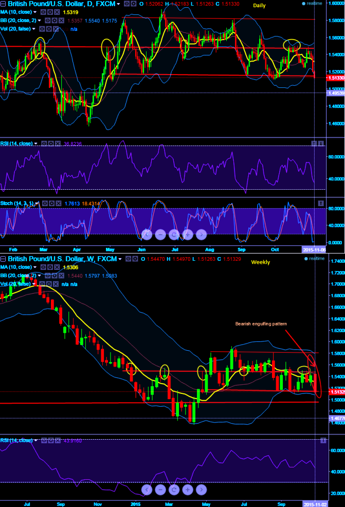 On speculative mindset, at spot FX levels of 1.5130, it is good to buy -0.50 delta binary put options on every price spikes for minimum targets of 45-55 pips with stop loss of 30-35 pips on upper side.