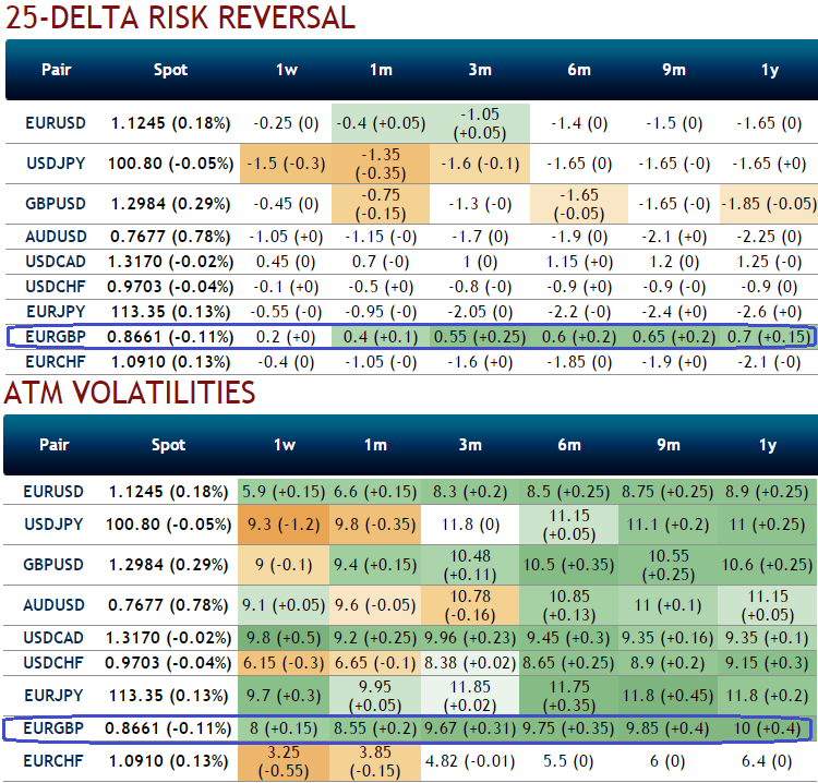 The implied volatilities of ATM contracts for near month expiries of EURGBP are spiking at around 8-9% which is a decent IV among G10 FX space.