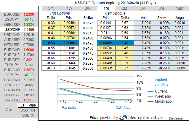 The OTC indications are conducive to these options positions. Please be noted that positively skewed IVs of USDCHF and EURCHF of 1m tenor are signifying hedgers’ sentiments for the bearish risks. This indication is coupled with 1m RRs of USDCHF show bearish neutral risk reversals. Hence, we advocate to hold -0.49 delta ATM put of 1m tenor.