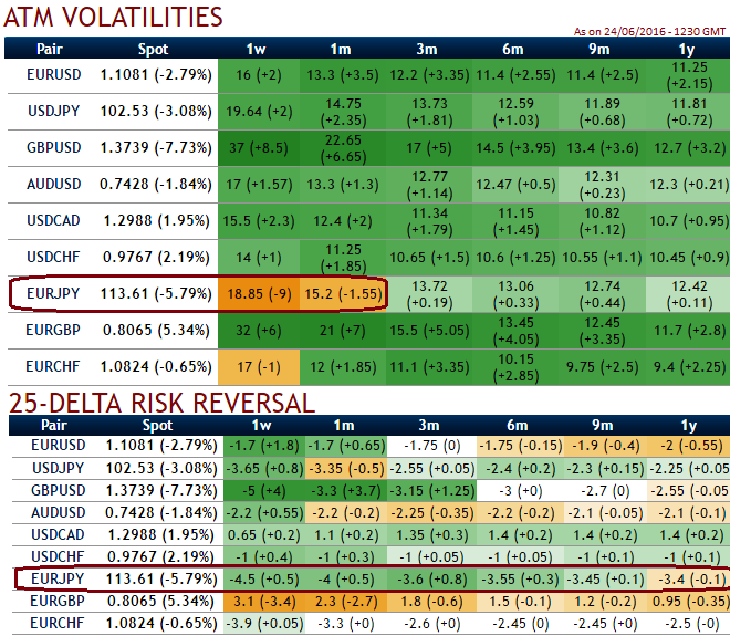 Capitalizing on interim upswings in EURJPY, shorts have been favored by acknowledging the implied volatility fading away in of Euro crosses (see nutshell).