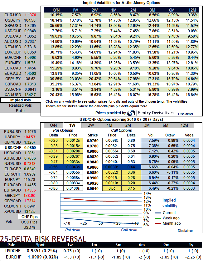 While negative delta risk reversals signal hedgers are more concerned about downside risks of Swiss crosses, thereby they are willing to pay more for put options, which is the good news for OTM call writers as the underlying spot is likely to travel adverse to the call strikes. Hence, we would like to devise below option strategy so as to suit the puzzling swings of USDCHF.