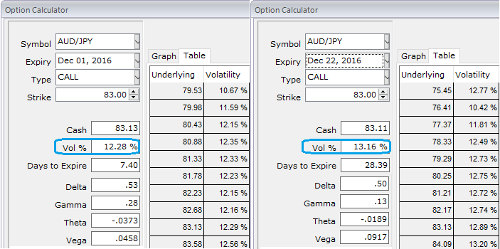 1w at the money volatilities of 50% delta calls and puts are at trading around 12.28% and 13.16% for 1m tenors which is reasonable as the vols currently are working in the interest of option holders in month tenor as you can see IVs and corresponding movements in vega.