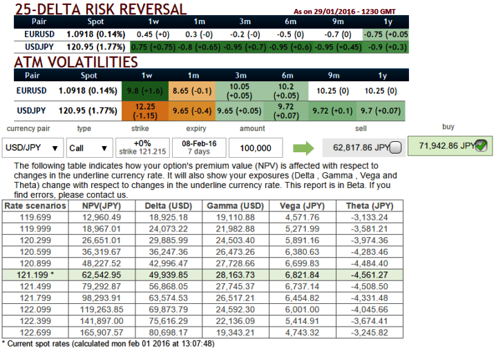 As such, we discuss some key considerations that relate to economic developments herein, assessing risks ahead of the central bank's policy stance in the months to come and yen's gains against dollar. Please be ntoed that the ATM calls are trading 15% more than NPV which is in line with the OTC market sentiments (no deviation from the delta risk reversals commpuutaion). So shorting such calls using narrrow expiries in the diagonal spreads would likley to derive certain yields.