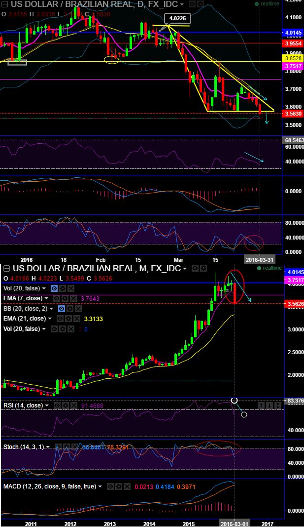 Overall, as we've seen dips from the peaks of 4.2476 to the current 3.5637 levels (almost 16.11%), which makes the BRL the "7-month highs" in just a span of one month.
