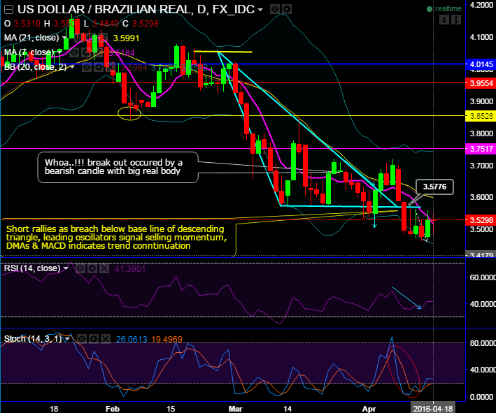 As result of above political turmoil, from last couple of days, USDBRL holding stronger at 8 month lows.