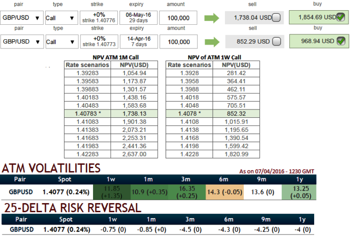1W ATM call premiums – Trading 13.61% more than NPV.