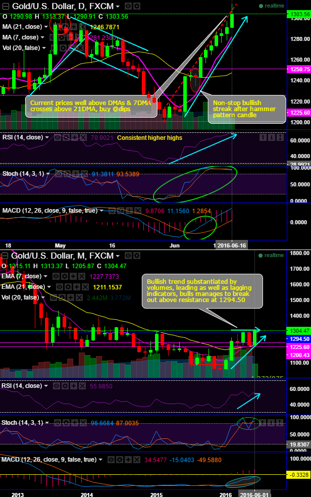 Well, for now, the yellow metal hits 22months highs at 1313.37 levels, dropping back to halt at the current 1303.46 levels.