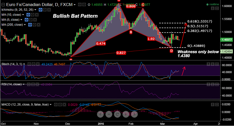 - Bullish Bat Pattern seen on EUR/CAD daily charts.