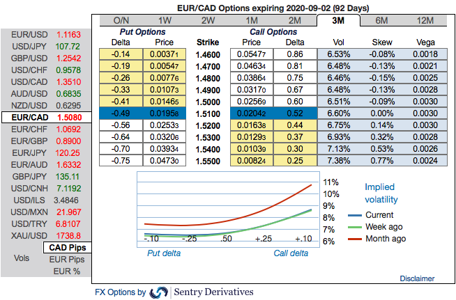 While positively skewed IVs of 3m tenors of EURCAD contracts have also been indicating upside risks, bids for OTM Calls are on high demand as the hedging sentiments for upside risks are intensified (refer above nutshell).