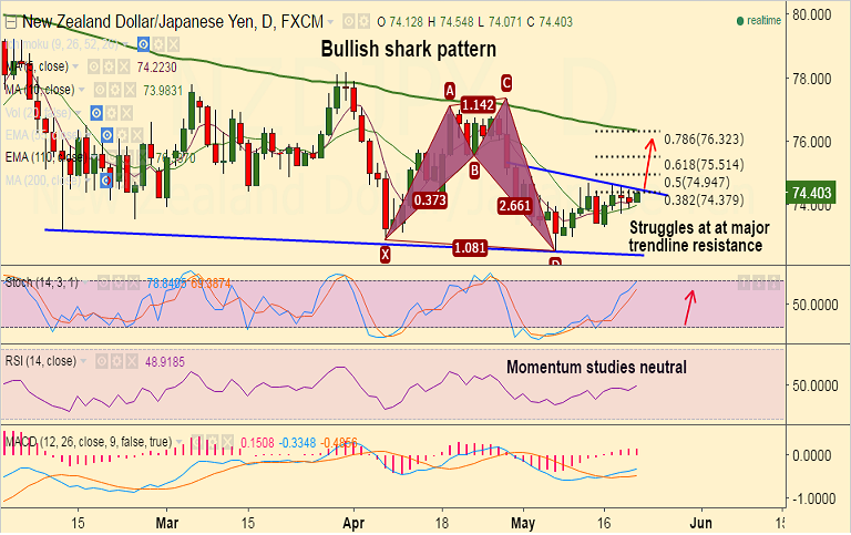 - Bullish Shark pattern evidenced on NZD/JPY dailies.