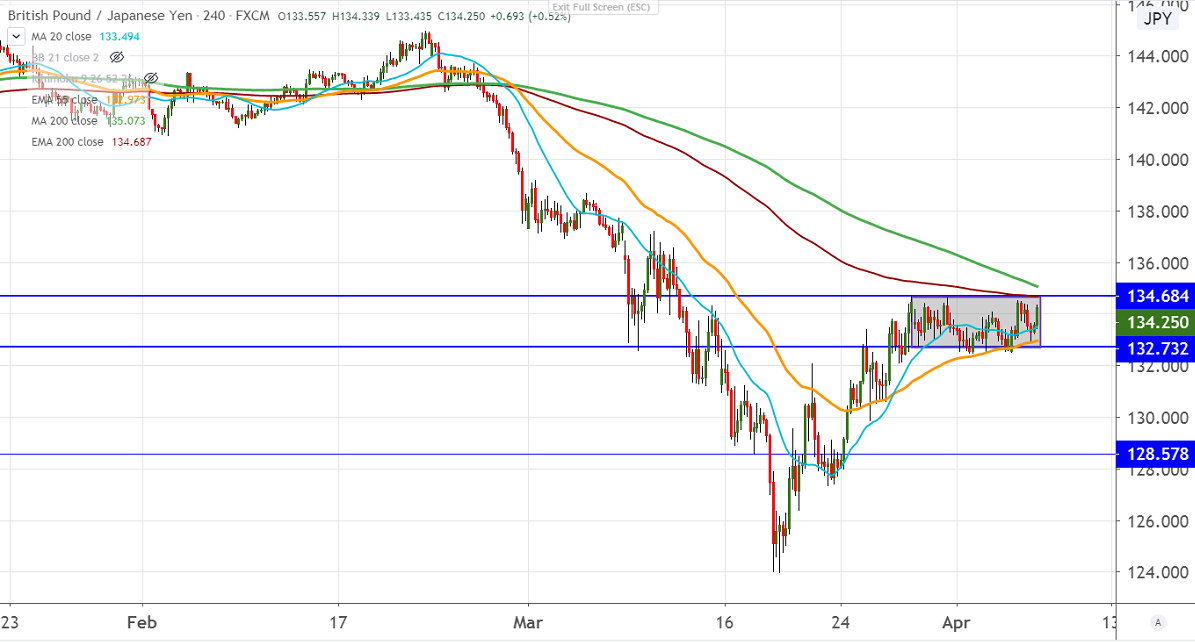 On the higher side, near-term major resistance is around 134.75-135.07 (Mar 27th high and 200-H MA) and any violation above will take the pair to next level till 136/136.90.
