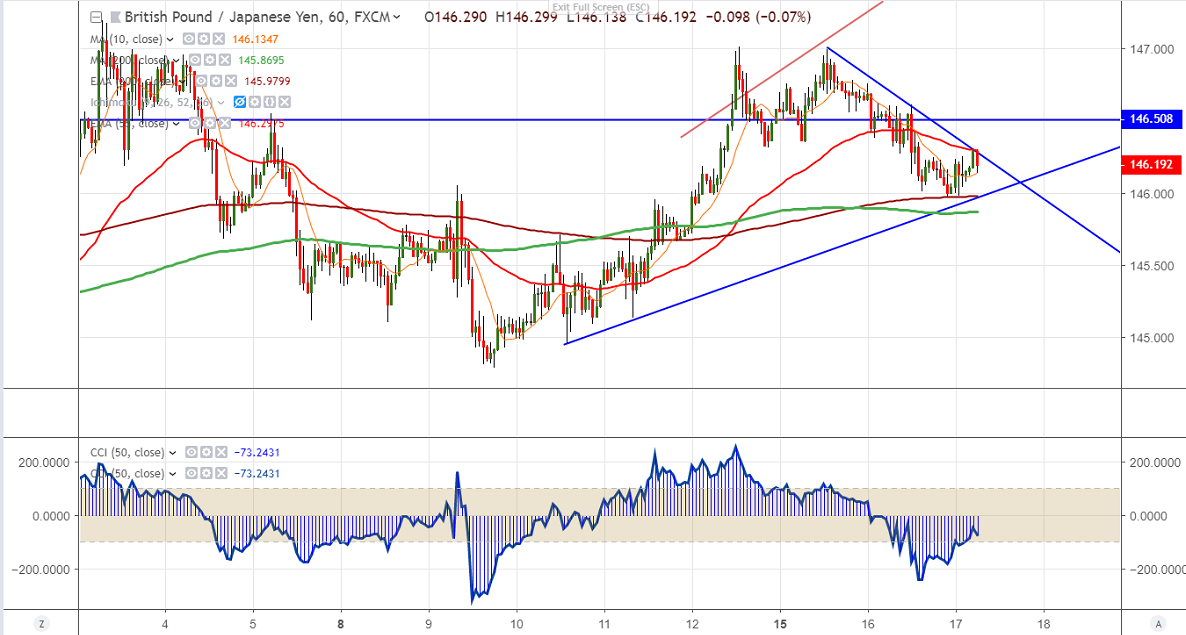 On the higher side, any convincing break above 146.30 will take the pair to next level till 147/147.20. It should break above 147.20 high made on Apr 3rd 2019 for further jump till 148/148.85.