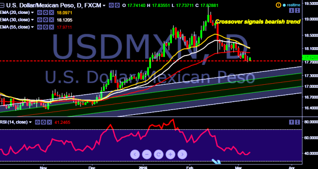 We prefer to take long position in USD/MXN around 17.75, stop loss 17.69 and target 18.31/ 18.94 levels.