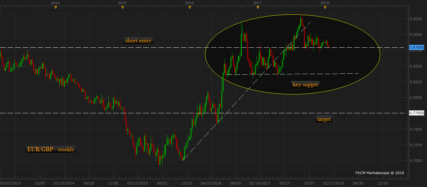 One of our forecasting models used for the long-term forecast is pointing to a bearish pound against the euro. Based on our calculations we expect the pound to decline against the euro to as low as 0.775 area. The pound is currently trading at 0.879 against the euro.