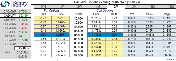 Contemplating all these driving forces of CADJPY, we reckon that the underlying pair has equal chances of moving on either side but with more potential on the downside, accordingly, we advocate diagonal options strips strategy on both hedging as well as trading grounds.