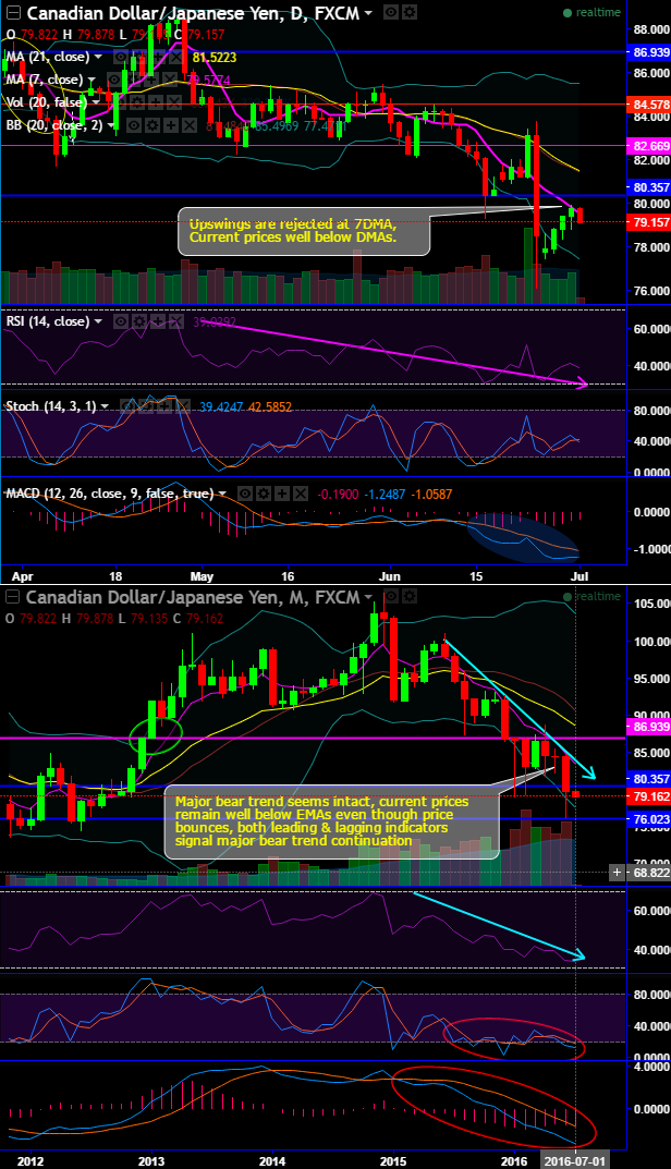 On the broader perspectives, price on the monthly drop below 79.183 decisively has been serving strong bear trend with robust volumes.