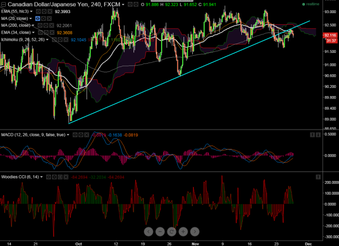 CAD/JPY has once again made a low of 91.62 and recovered till 92.35 at the time of writing from that level. Short term trend is still bearish as long as resistance 92.50 holds.