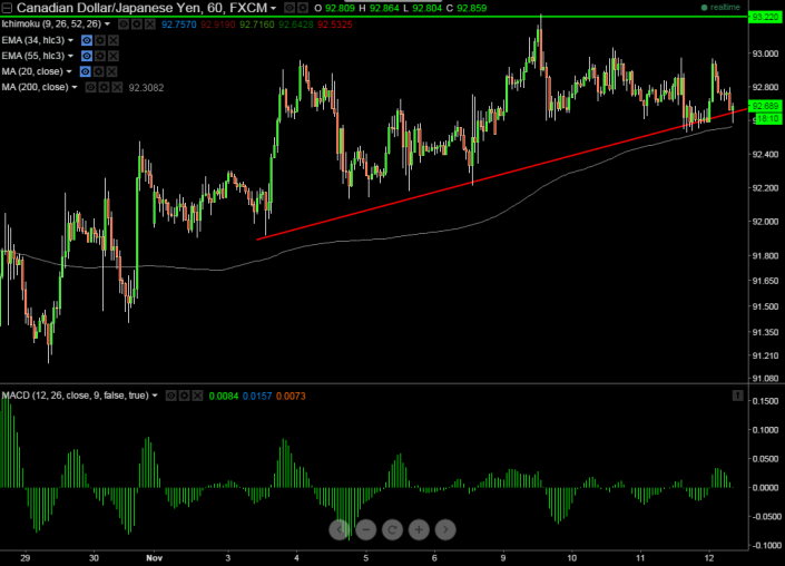 - CAD/JPY has made a high of 92.97 and started to retreat from that level. The pair is facing strong resistance around 93.25 and any bullishness can be seen only above 93.25.