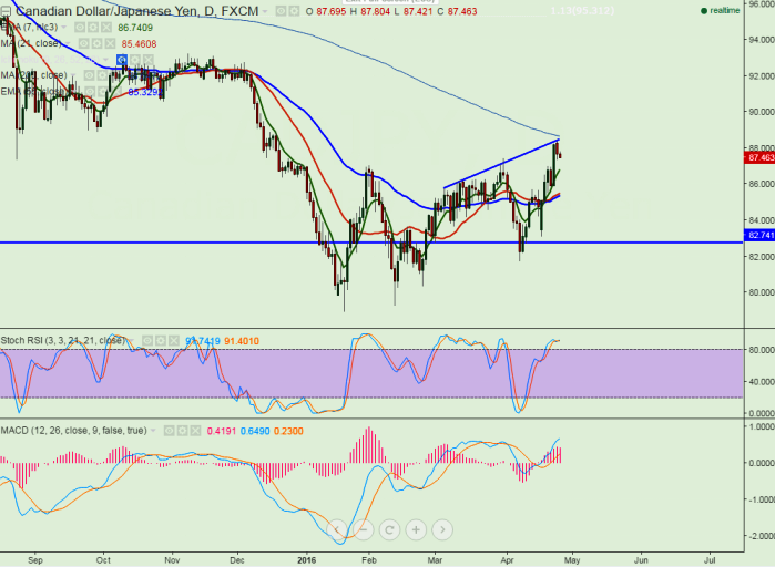 - The pair has made a high of 88.36 yesterday and declined from that level. It is currently trading around 87.51.