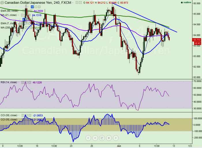 - On the higher side any break above trend line resistance 84.30 will take the pair to immediate resistance at 84.60 (200 4H MA)/85/85.50.