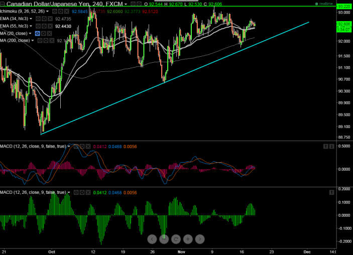 - CAD/JPY has made a high of 92.78 and declined till 92.51. It is currently trading around 92.65