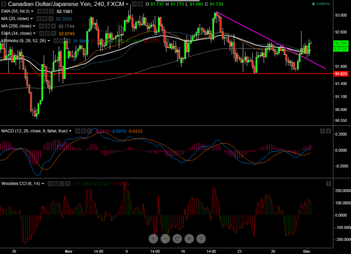 - CAD/JPY has broken minor trend line resistance 92.05 (trend line joining 93.09 and 92.28) and jumped till 92.62 from that level. Short term trend is bullish as long as support 91.60 holds