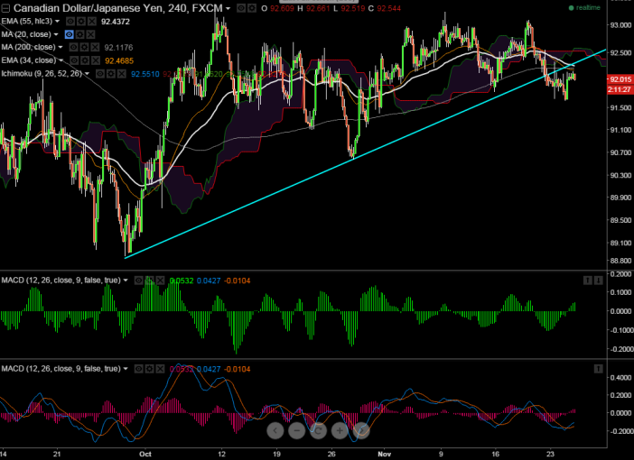 CAD/JPY has once again taken support around 91.60 and recovered from that level. Short term trend is still bearish as long as resistance 92.50 holds.