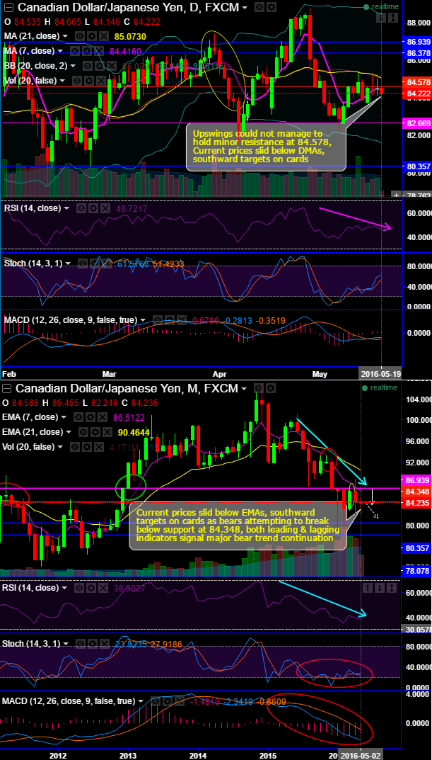 For now, the current prices have slid well below DMAs after prolonging whipsaws through resistance at 84.578 levels from last couple days & on the verge of plunging towards southward targets.