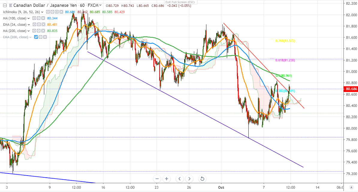 The near term resistance is around 81 and any break above will take the pair to next level 81.82. Major trend reversal only above 82.10.