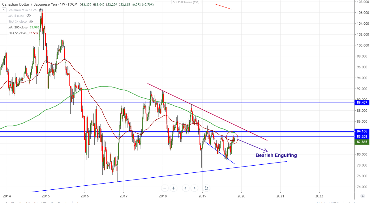The near-term resistance is around 83.55 high made on Oct 28th, 2019, breaks over targets 83.97 (200-W MA). Major trend reversal can be seen only if pair closes above 83.97, a jump till 85/85.20 likely.