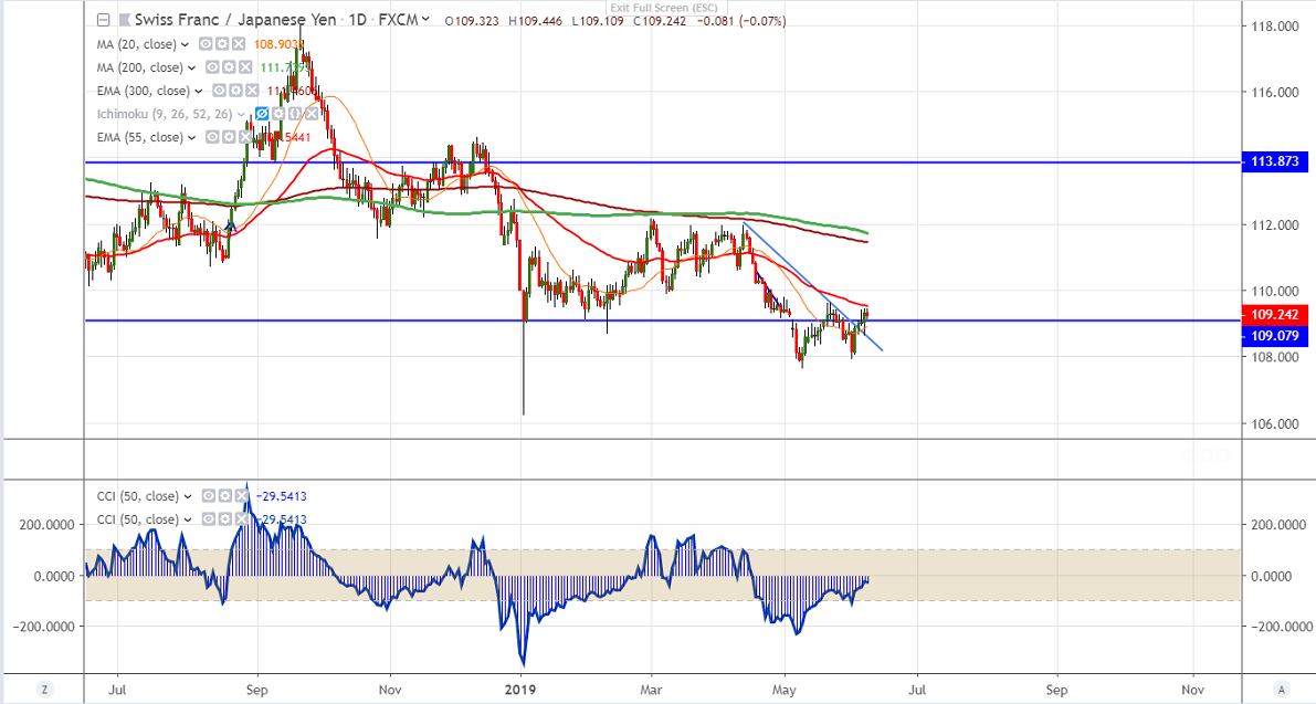 CHFJPY is trading higher for past four trading days and jumped more than 150 pips from low of 107.92 level.The previous low was 107.61 and almost like double bottom. Swiss franc is trading higher against USD and USDCHF has lost more than 400 pips from its high of 1.02369 due to increase in safe haven demand.It hits intraday high of 109.446 and is currently trading around 109.19.