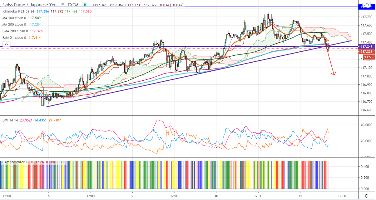 It is good to sell on rallies around 117.35-40 with SL around 117.80 for the TP of 116.65.