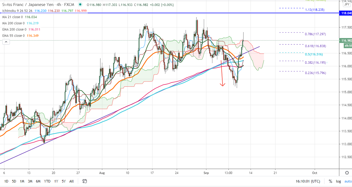 On the lower side, near-term intraday support is around 116.50 and any close below will drag the pair down till 116/115.15/114.27/113. The next primary resistance to be watched is 117.35 and break above that level targets 118/118.62.