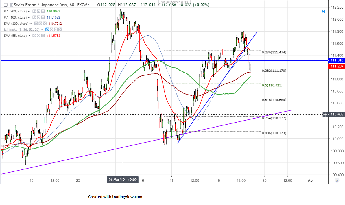 The near term minor support is around 111.30 and any break below will take the pair to next level till 111 (200-H MA)/110.68 (61.8% fib).